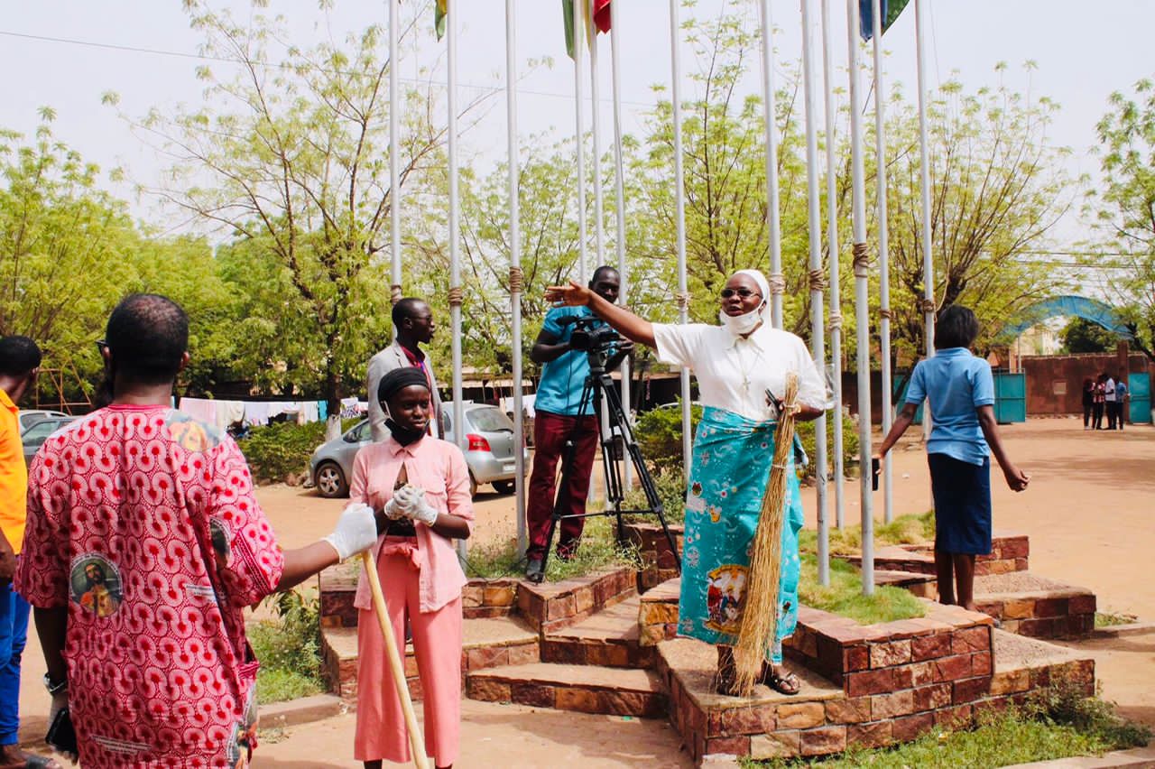 Après l'hymne de l'UCAO , le coup d'envoi était ensuite donné par le Président son excellence Père Clément LONAH et la vice présidente L'infatigable Sœur Thérèse SAMAKE. Et c'est parti les mouvements de balais qui véhiculaient par tout dans la cours de L'UCAO-UUBA. UCAO toujours en avant !